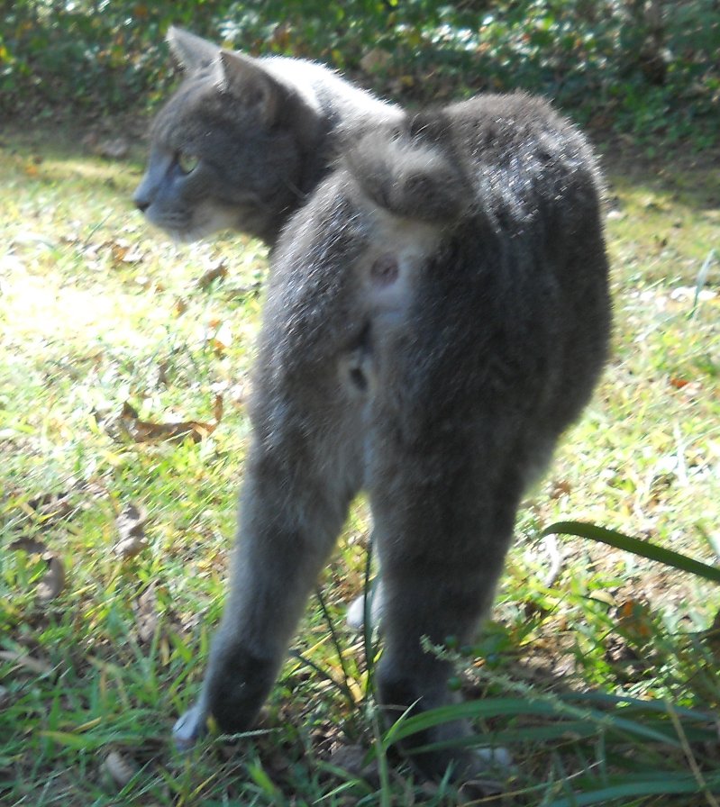 Just back from kat supper. Nothing unusual to report; I petted all three, and Boy Liver crouched behind the pecan tree uphill, hoping to chase Goblin later.