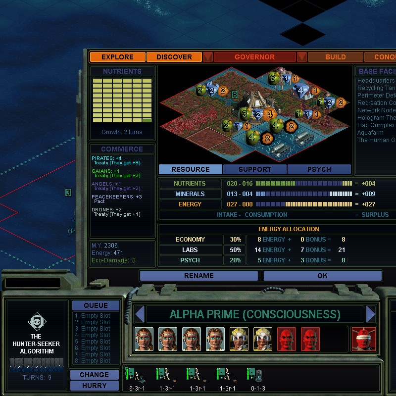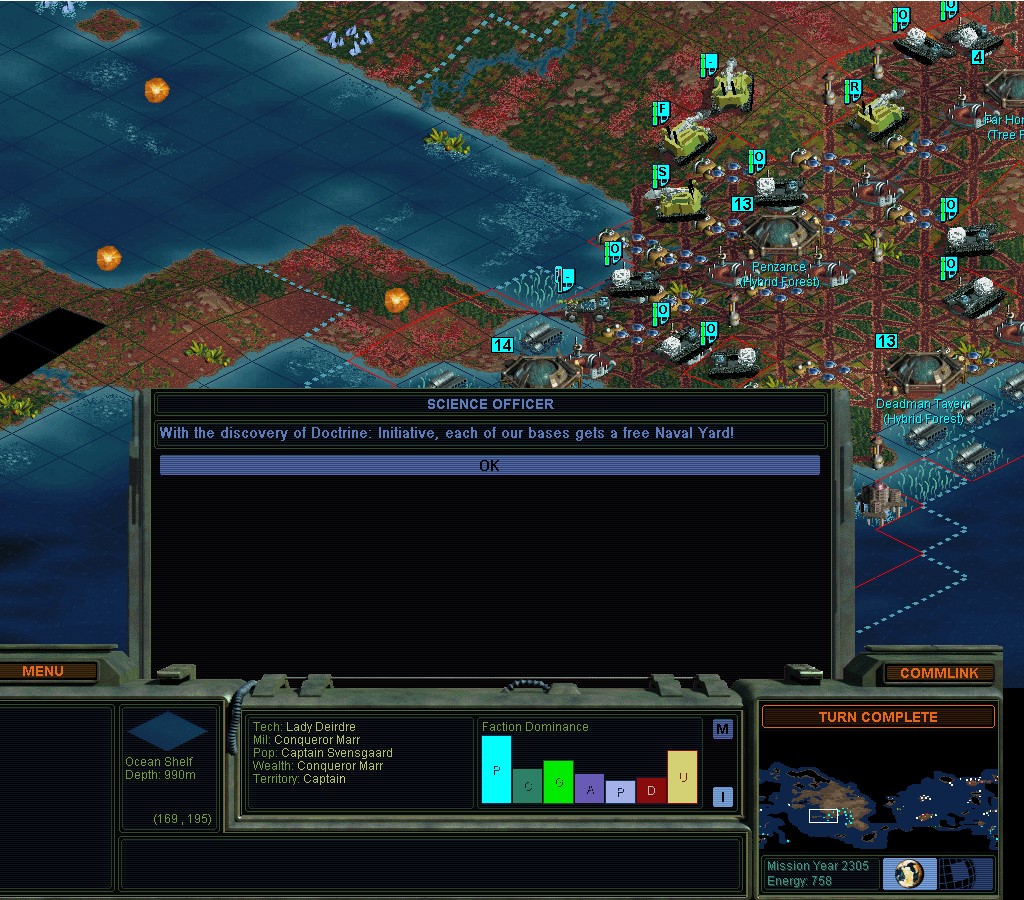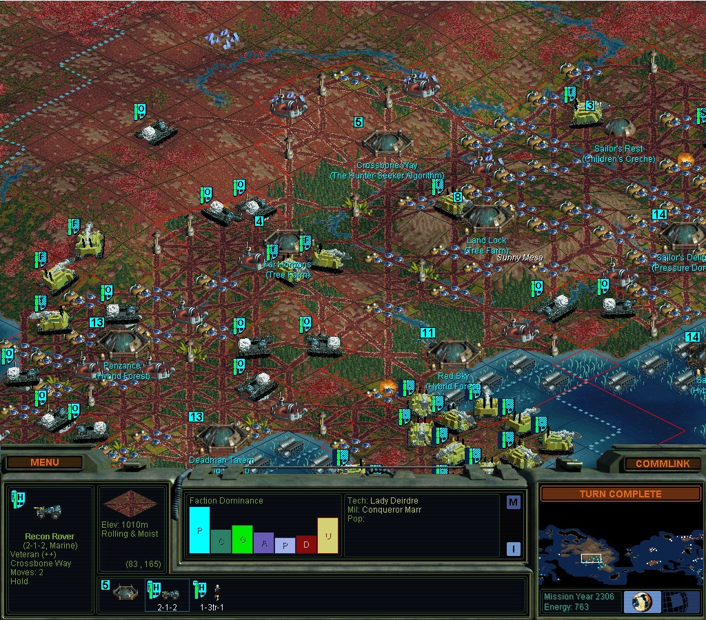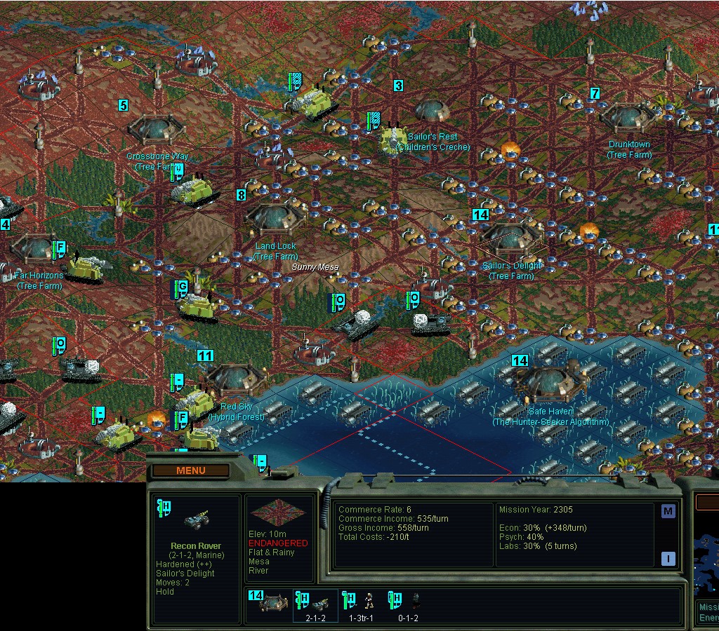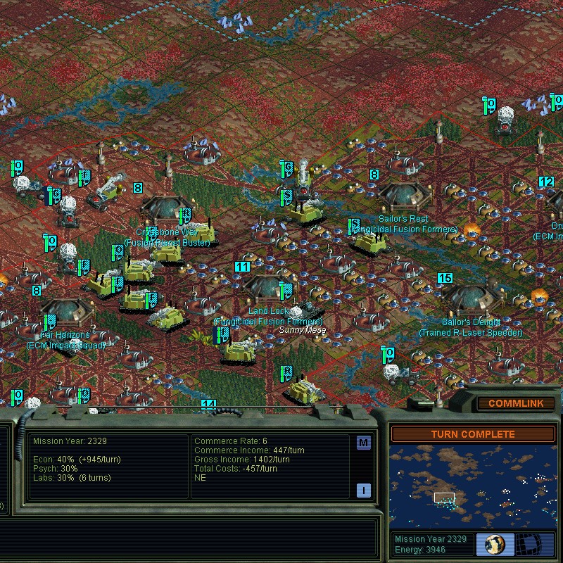 Actually I did not know that. I've observed the phenomenon of suddenly having a land pod, but I never figured out the cause and effect. Oh no, you're saying I can actually create pods, essentially by prospecting for them? What a dangerous micromanagement invitation. I wonder if it still works in a No Unity Scattering game like I'm playing. If it does, umm, I might have Evil uses for all these Formers. I would do it with some land that doesn't matter, on the way to Deirdre or some such. To be honest this kinda borders on a cheat, and maybe I shouldn't. But if I don't come up with some other direction or purpose for this game, maybe I will consider a "massive pod raising demonstration".In my opinion as the expert on exploits, sea resources>land pods>random pod pop is an intended game mechanic w/o the faintest whiff of exploit/cheating.