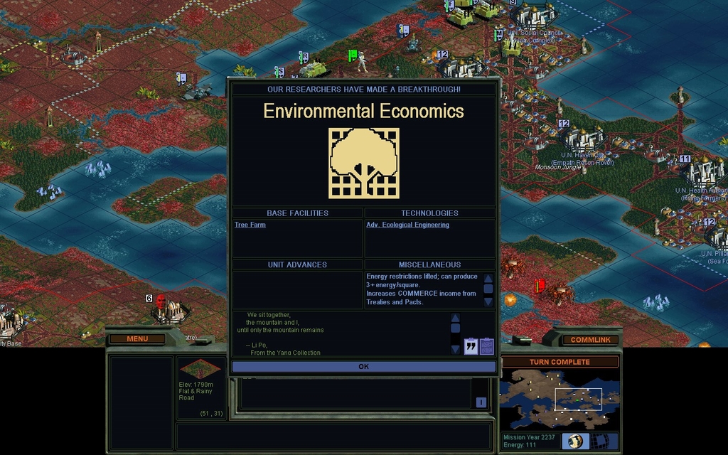 A partial excuse for Civ-likes is they're open ended and a bit sandboxy. Somebody who fools around a lot, rather than focusing on how to win quickly, might not mind meandering through the tech tree. I do wonder what good all the fungus production techs are going to do anyone though. By the time you obtain those, you could have long since gotten your victory resources by other means.