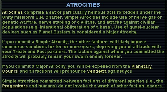 See, for reasons that only the Firaxis expansion pack authors can fathom, you get a free pass using chemical weapons against Alien factions.  Possibly because they don't engage in Commerce with humans, so you can't impose Sanctions on them.  Nor can they participate in the Planetary Council.  Gasification without representation: that's not fair!  We don't happen to have that issue in this game, it's an all human cohort.  Random opponents, Transcend difficulty, on a Standard size map.