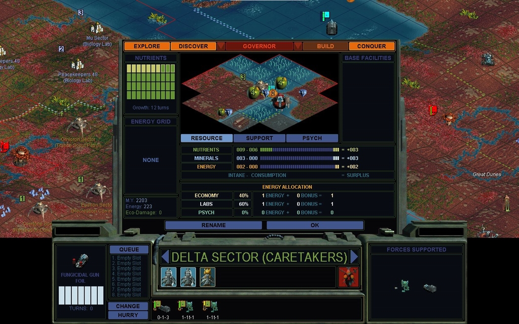 In regards to the SUPPORT question, worth thinking about Civ iii, which switched SUPPORT from minerals to energy and ran it across the entire empire, rather than per base. I don't know whether energy or minerals are a better value for support but spreading the pain makes more sense. Could be tricky if you're paying the absolute minimum on a partial cost to rush a construction and your base suddenly has to support a new unit.