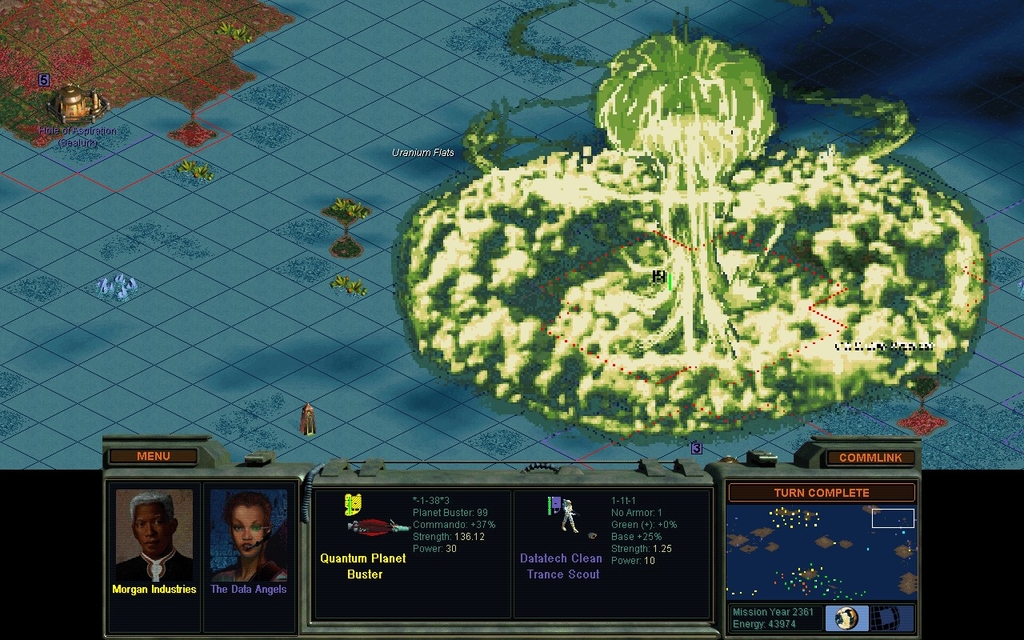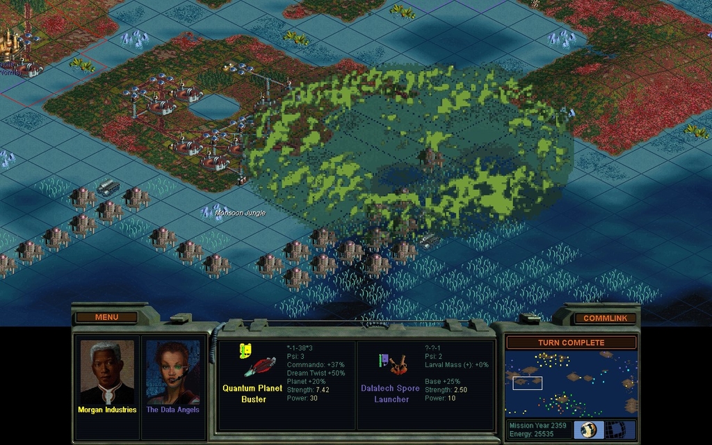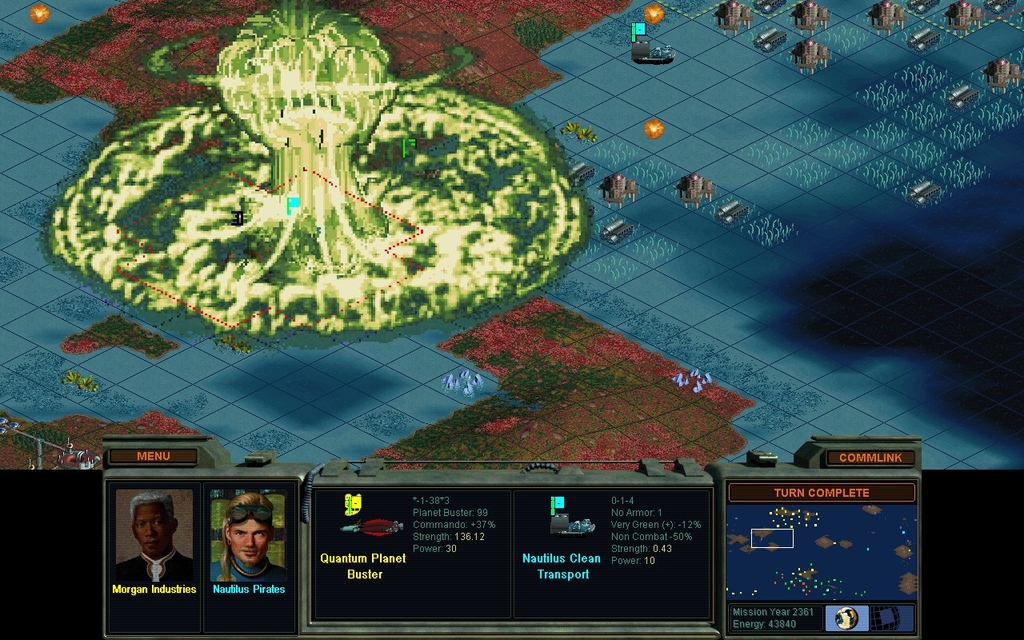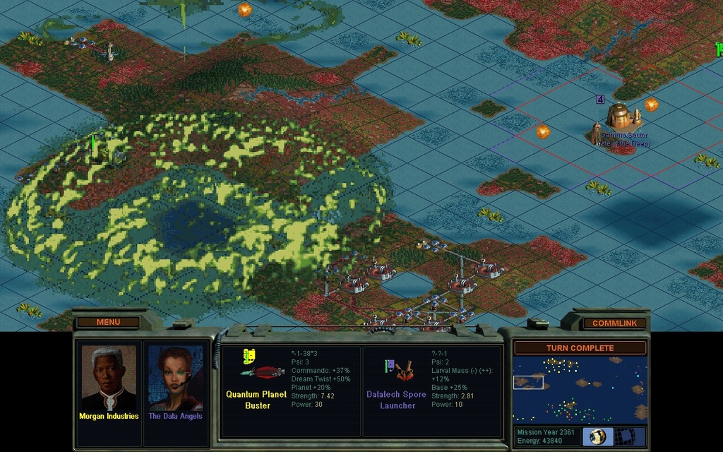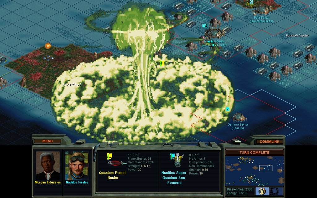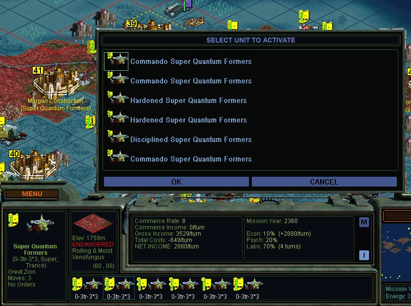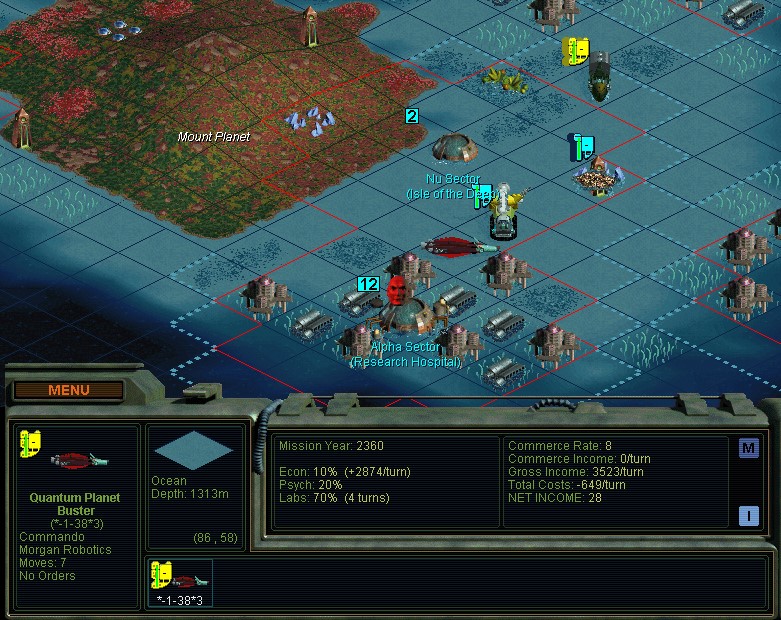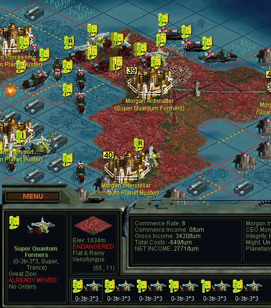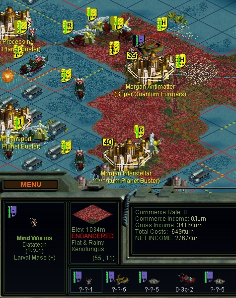 MY 2360.  The bug has marched 1 square south, into my base!  I believe the mindworm pops are to blame somehow.  Now I've got Pirates showing up.  I believe the display of those units, is obscuring my own units, but that they're still there.  I'll work around this and try not to crash the game yet again.  Save attached again.