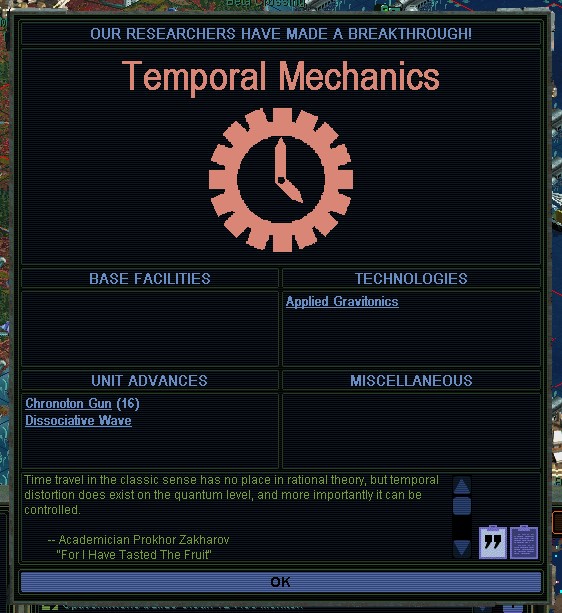 MY 2403.  I honestly don't see any need for Psi Gates at this point, fun as it might be to build them.  Although I have played some games in the past where I did build them, nowadays I question whether I'd ever get to this in rational play.  Even with my LABS budget at 10% for as long as its been, none of the other factions have discovered Quantum Power or Graviton Theory.  They're helpless.  Nobody did anything aggressive.