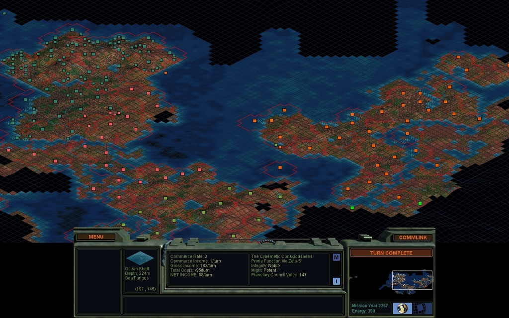 I'm starting to disband my vast horde of Formers as I really don't need them for much anymore.  A small complement could gradually make more Mines.  I don't want to go crazy on eco-damage.  I've already put roads on top of all the Rocky terrain to make access easier.