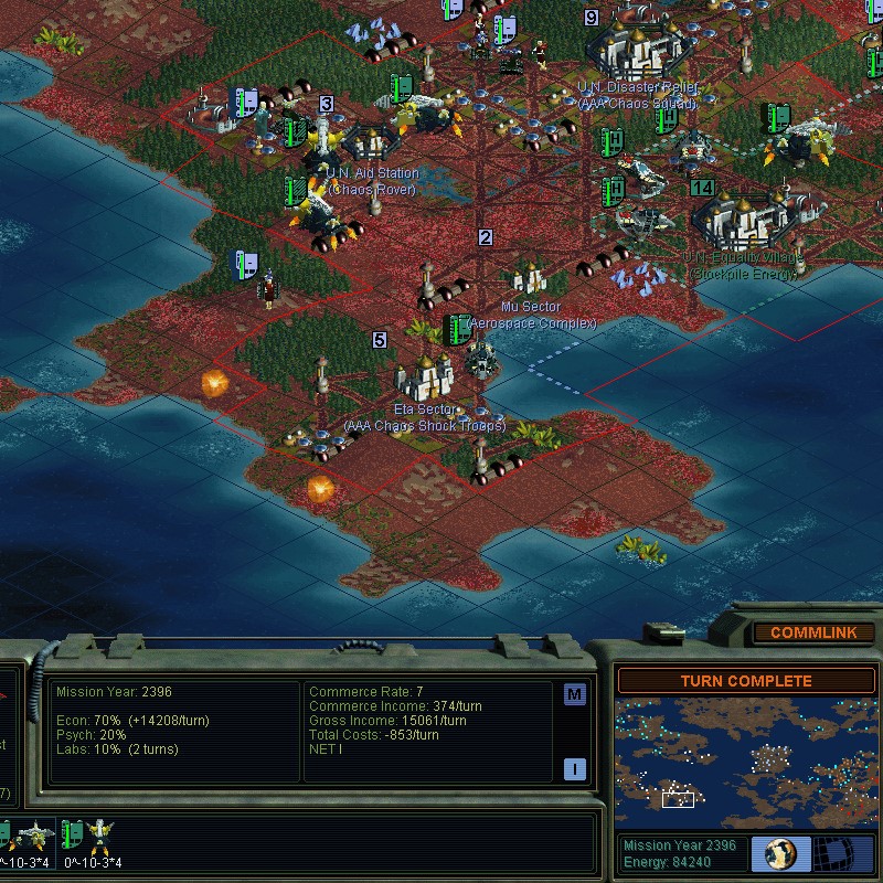 My intervention with a Solar Shade was more than sufficient.  Now I've got a landlocked ship.  It had nothing to complete anyways.  The other ships to the east, finished their tasks and are now useless.  There's not even anything to disband for, as cities are stockpiling energy now.  18,154 credits saved.  4008 votes.  I would currently need 4800 votes to win.  Let's see what it takes to corner the energy market.  Uuuuh 124k credits needed.  So, 10 more turns of saving energy, or however many votes are needed meanwhile.