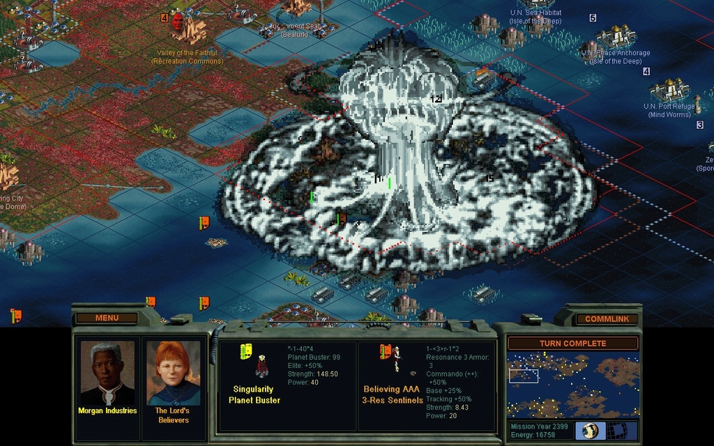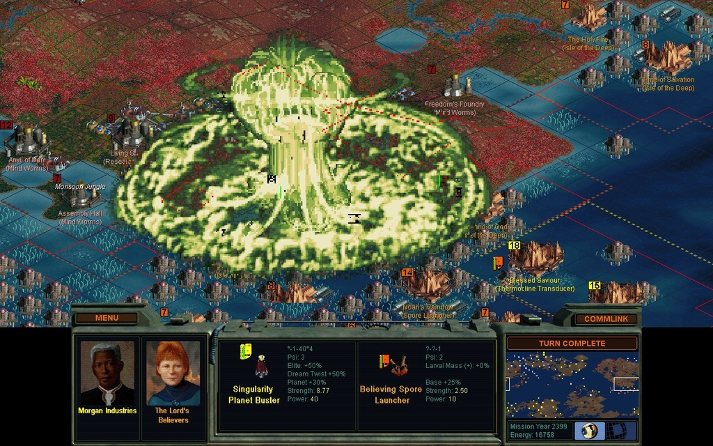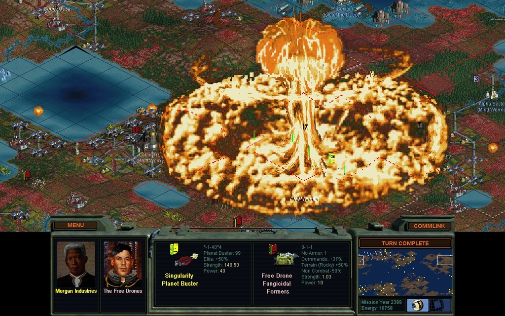 The Free Drones lost an isolated city because they left one of their mindworms lazing about.  I was trying to destroy the Believers but couldn't resist the opportunity to include them in the blast radius.