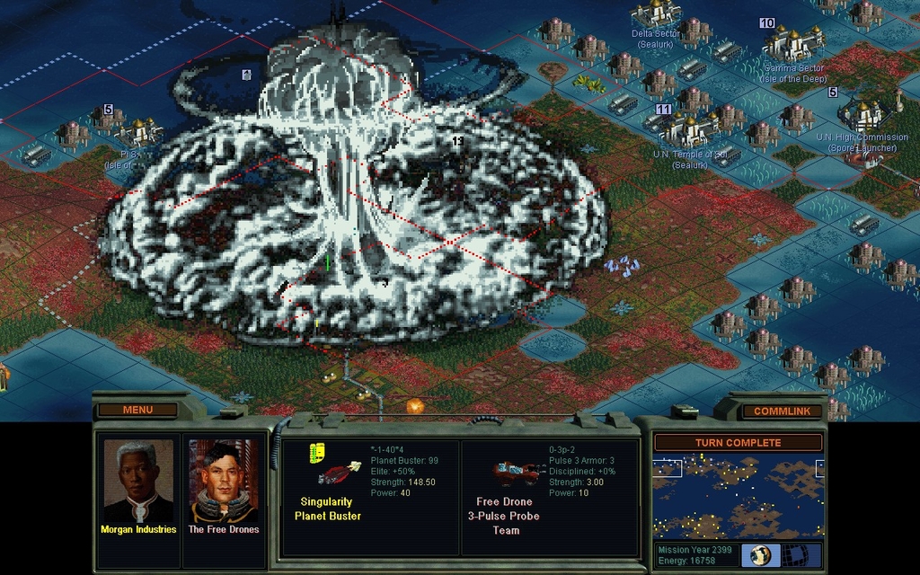 I forgot that the Free Drones are the only faction to deploy an Orbital Defense Pod.  They had a few more a long time ago, but they lost them attacking my ODPs I think.  Pity, I had made all these Conventional Missiles to fool the ODP into discharging.  Totally forgot to do it.
