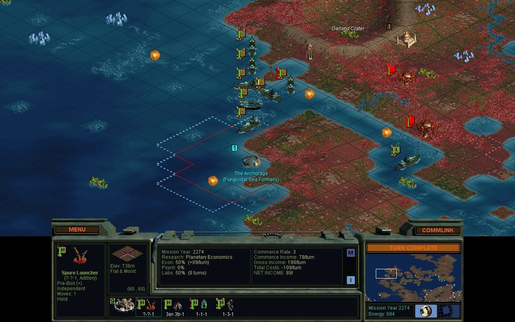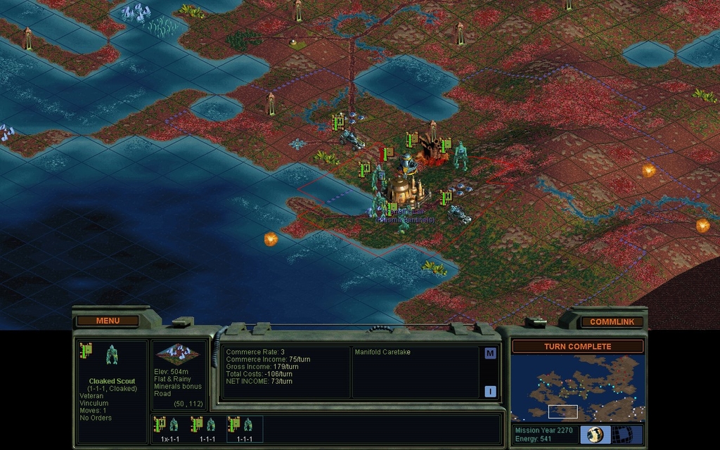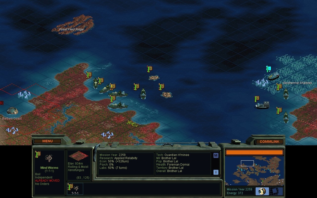 Trance Scouts are a good cheap antidote to mindworms.  They're a predefined unit, so the AI knows how to make them too.  Hmm, makes me wonder if the Cloaked Scout is being made too much instead.  Also I think the unit designer messes up the predefined Trance 3-Res Sentinels.  I seem to have to design that unit myself.  Getting the AI to build more kinds of Trance units, might reduce the cakewalking I tend to do with mindworms.  I mean if I actually used all the mindworms I captured in the current game, at least one of my enemies would be so dead.  Instead I just leave them all at home as this big badass garrison.  I only like to push units across the map if I have rails.  Far fewer mouseclicks.  Some games I just wait until orbital insertion because I'm lazy.