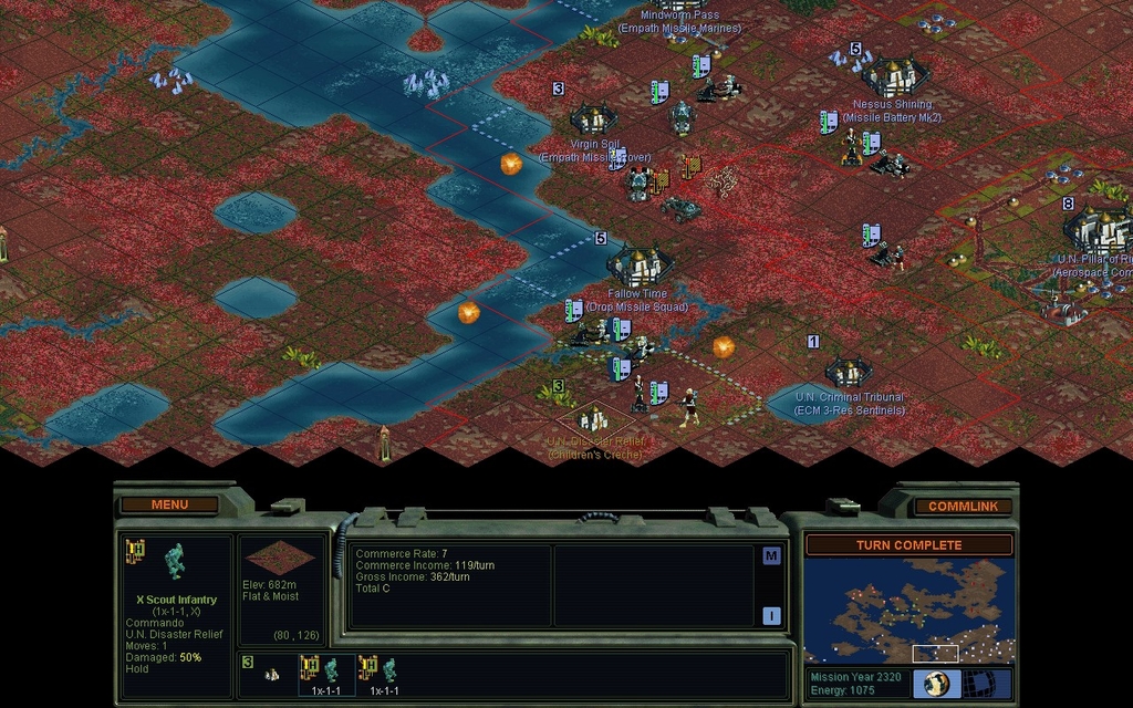 After 40 years of constant border war against the University my army of native life forms is finally breaking through. I think Zakharov must at least have thrown somewhere between 20-30 Laser/Impact units against me. That was a struggle but yet so satisfying.