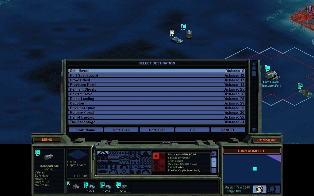 MY 2236.  The Pirate AI has built 91 Transports.  FFS why??  Players have reported on excessive Transports at various times in this mod's development, but there's never been a clear pattern to it.  Nor am I sure if it happens consistently.  The Pirates are at war with 4 factions, so maybe it thinks it needs these for a war effort.  There's a predefined unit for a Transport, but even in vanilla SMAC, its tech prereq is set to Disable.  I wonder if giving it an explicit home would fix the problem?