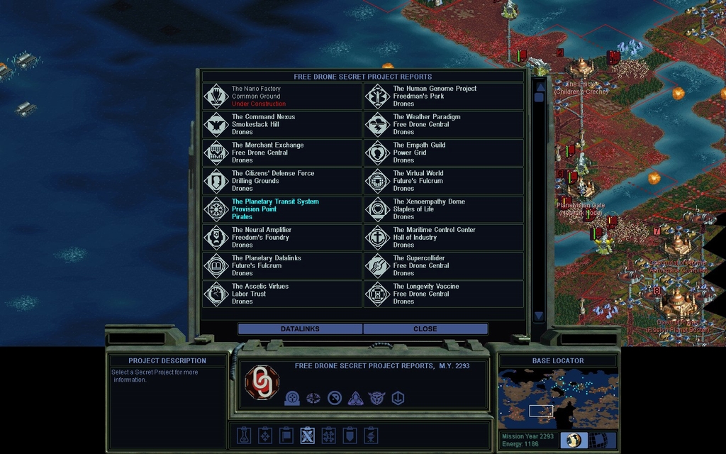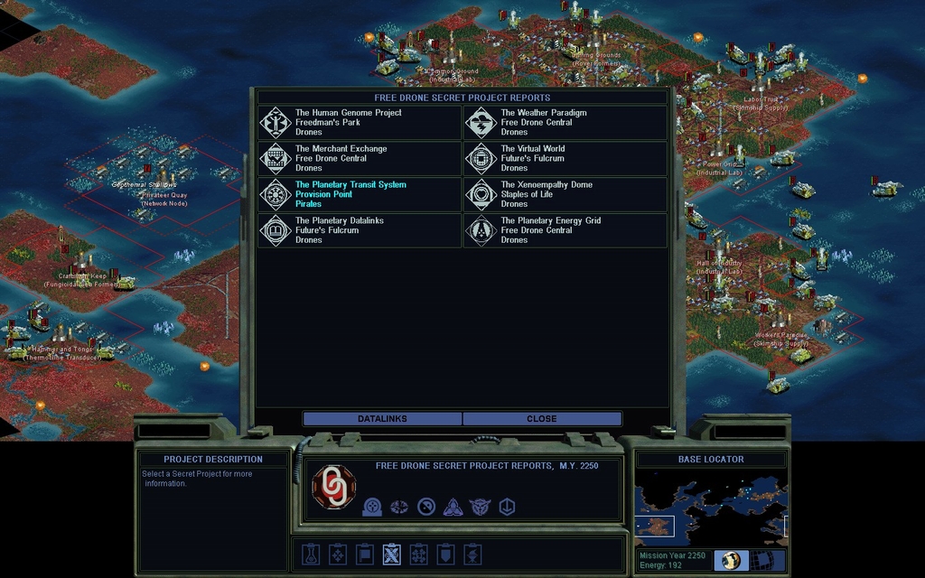 MY 2267.  I complete The Pholus Mutagen.  Witness my Secret Project authoriah!  My Planetary Energy Grid is not shown, it's on the next scrolling screen.  Yep I've got them outnumbered 16 to 1.  I guess this game is not that hard, or else the Drones are near optimal for an Enormous map.