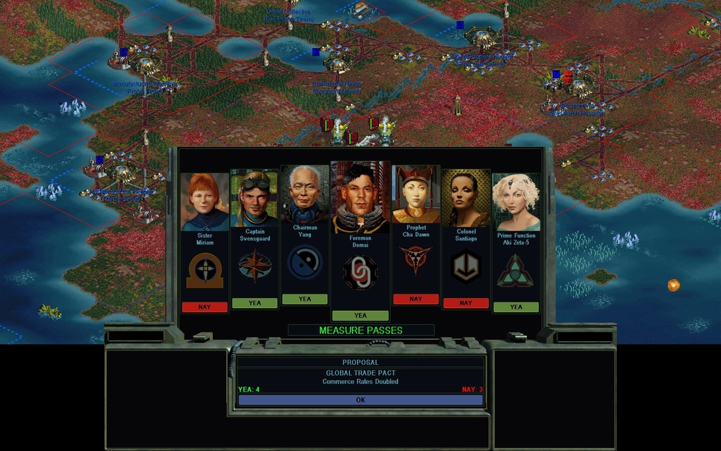 Based on my last calculations, that tips the voting balance in my favor.  Perhaps I should thank Miraim for her transgression?  Except that, I can't actually call the Council right now.  It wasn't that long ago that we all signed the Global Trade Pact.  I think I will make Santiago capitulate next.