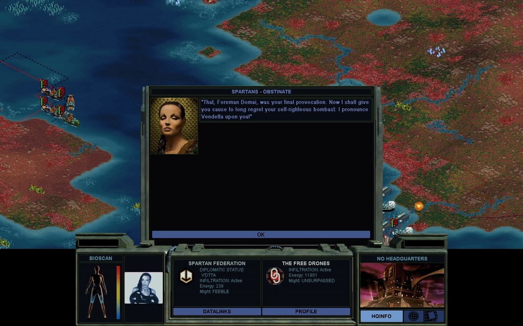 Well she's got pluck, for all the fat good it will do her.  The rest of my fleet is approaching her 2nd nearest sea base.