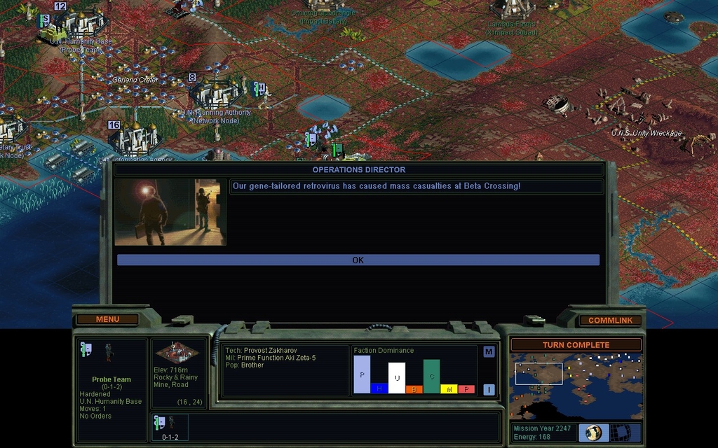 MY 2253.  Zhakarov takes over a Hive city with a mind control probe, leaving Yang with only his capitol.