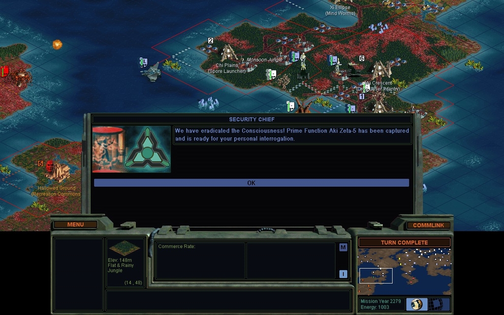 MY 2285.  I thought I got a fungal pop, but technically, it's Zhakarov's.  I actually built that Condenser though.  I will kill those mindworms for the money.  If I thought they would destroy his base, I'd leave them be, but they won't.  That was worth 170 credits!
