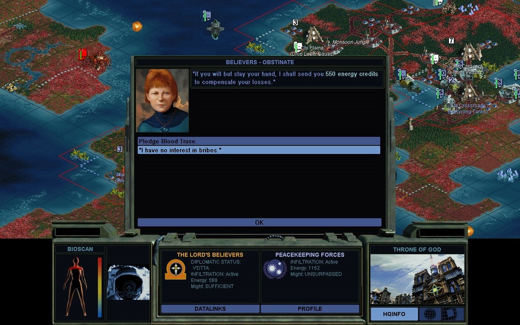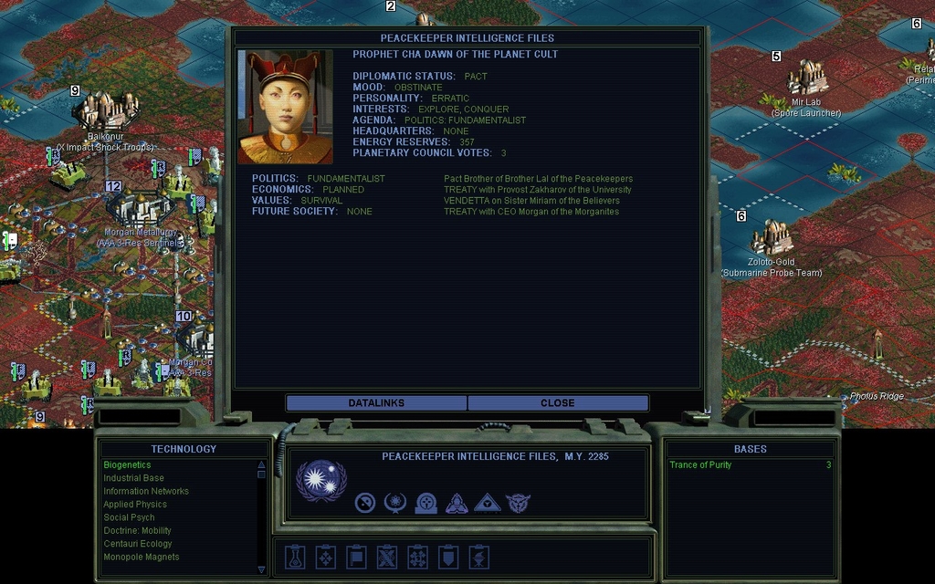 MY 2281.  I didn't have the heart to break my Treaty with the Believers.  Not when I'm so close to a Diplomatic Victory.  I will send a probe team and see if I can have a conversation about our mutual benefit in Victory.  Although, now that there is no obvious enemy other than Cha Dawn, I'm not sure why she'd just agree to let me win the game.  Can I pay her to vote for me for Supreme Leader?
