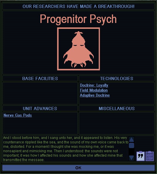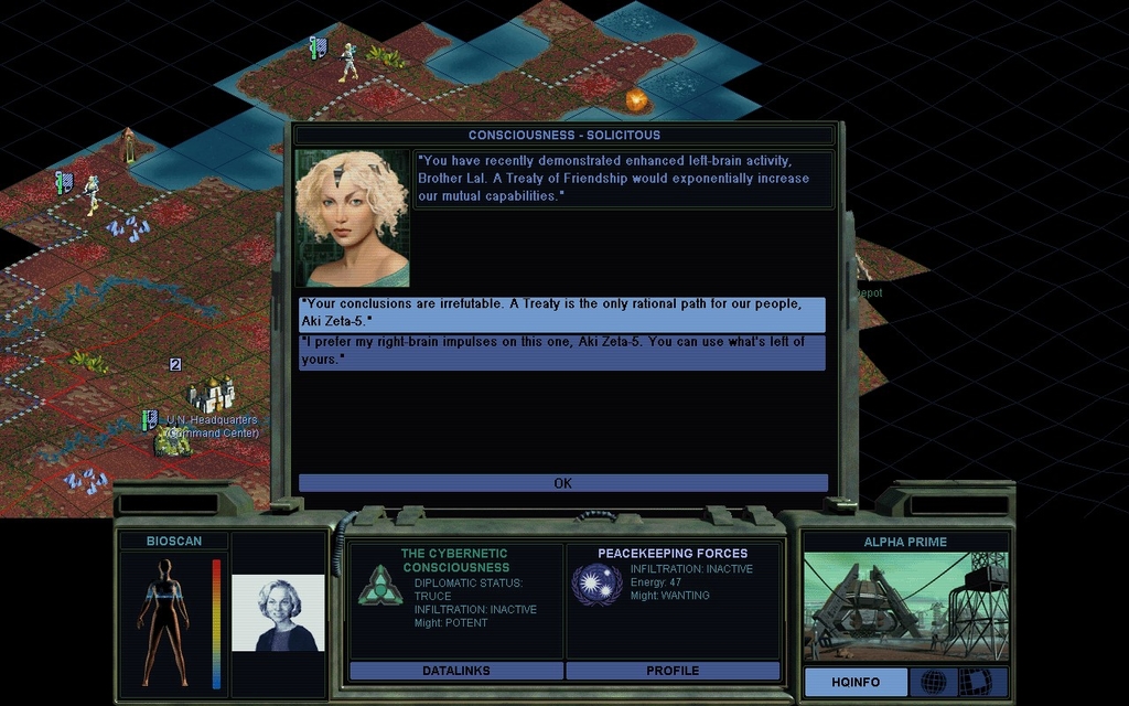 MY 2143.  The completion of my 1st land probe team, triggers communication from the Cyborgs.  Leading to some comm exchange, tech exchange, and an alliance!