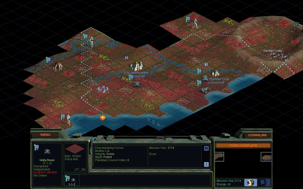 I make my claim on the northwest part of the Garland Crater.  None too soon as I saw the flicker of a Scout moving just east of UN Planetary Trust.  It's time to go meet the robots!