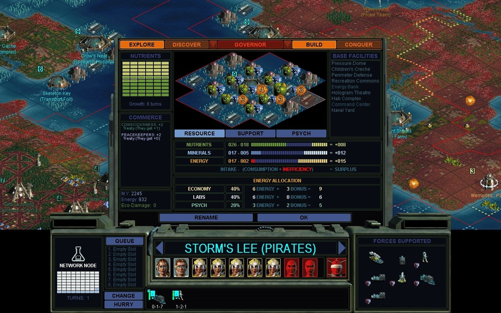 The Pirates are not pop booming.  They simply have that much food.  Thinker mod might be doing a better job of balancing minerals vs. energy in Pirate cities.  The stock binary tends to obsess about minerals.  The Pirates have chosen Democratic Socialist Wealth, giving them +2 GROWTH.  With a Children's Creche in a city it becomes +4.