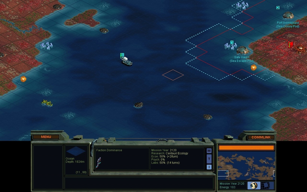 Game 13 proves it's possible to get a decent start without any neighbors.  I'm just scratching my head as to why it took so long.  The cramped starts have a pretty severe effect on the viability of my faction, as I have expensive burdens of defense that I simply don't have when I'm off on an island continent by myself.  In game 13 I've made 1 Command Center and all it does is make Trance Scouts!