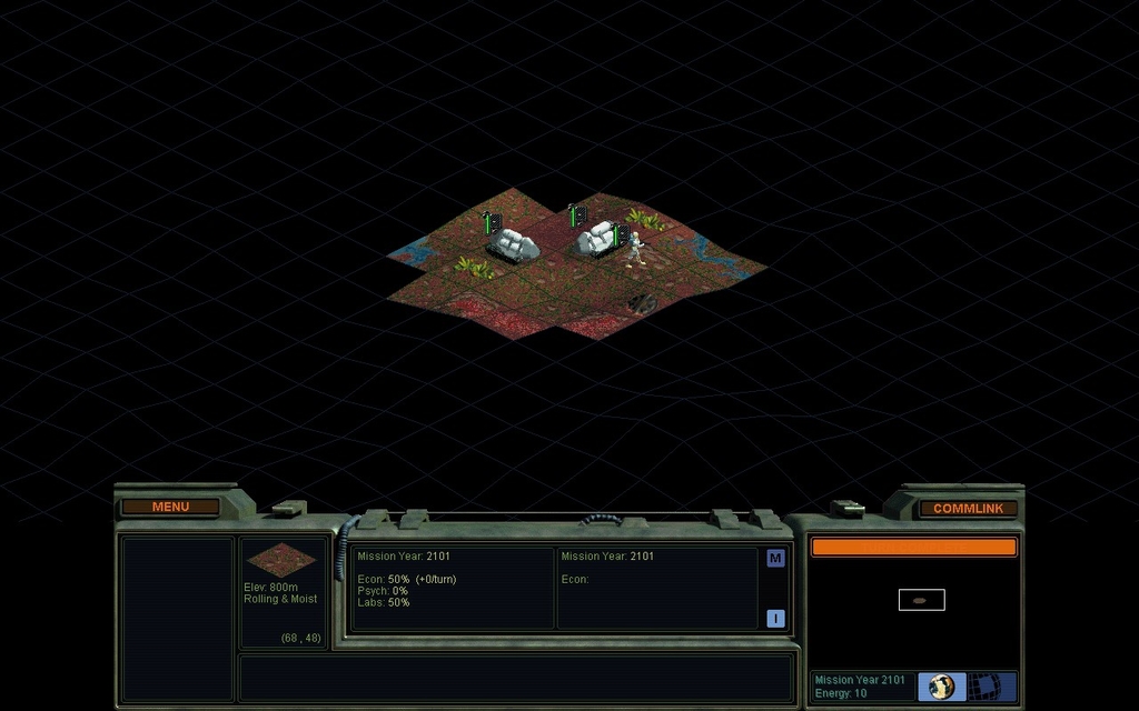 MY 2116.  The Peacekeepers' 2nd colonist has milled around in the same spot for over a decade.  All other factions have at least 3 cities now, and some have 4.  This is clearly a bug, but what causes it?  It's not for lack of resources in the area, they've had plenty.  Did they feel threatened by the mindworm at large, and not realize they had the Scouts to deal with it?
