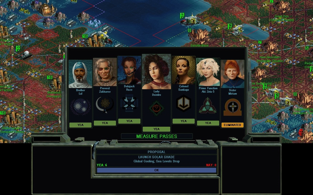 Everyone agrees that we should launch a Solar Shade.  I hope it's enough.  I don't have the patience to deal with global flooding on top of everything else.  I'd probably just quit.  I've seen it in like 13 previous test games and it gets old.  I sit around having to deal with that as a basic productivity issue, instead of all the other "catch up" stuff I should be doing to deal with the leading faction.