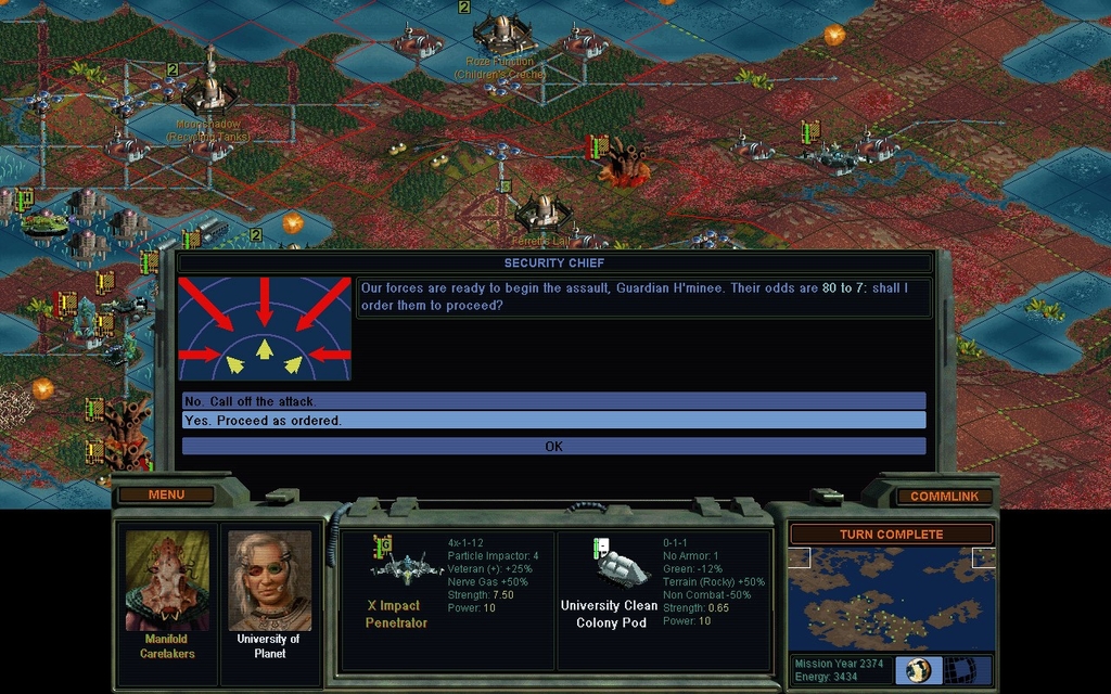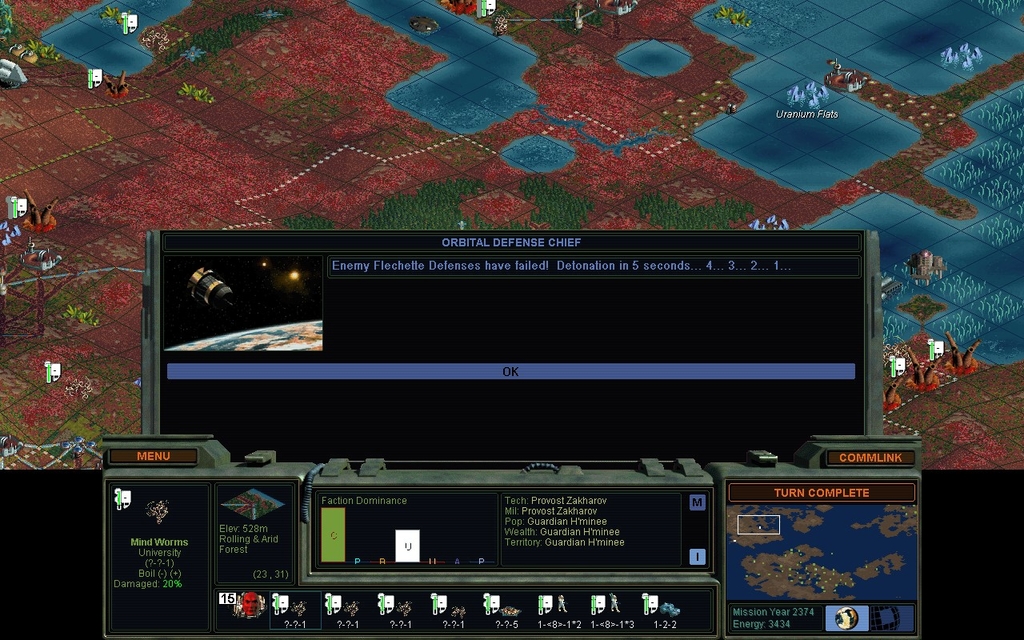 As I suspected, I don't get to attack the mindworm with any Gun unit I bring in.  I don't think I can take this base conventionally this year.  Let's move on to nuking the opposition.  Maybe I won't have to take it.