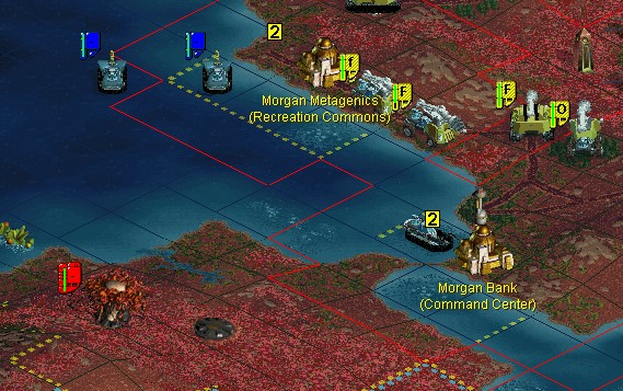 MY 2196.  The Pirates have declared war on the Hive.  I think that Hive Foil Probe Team found its mark!  The Hive have stopped shelling me and seem like they're heading towards Pirate waters.  I predict Svensgaard will slaughter them and end my problem.  I'm glad I didn't have to use any chemical weapons to deal with this.  I'm just building roads and completing my control of my "island".  I still need either Fungicidal Formers or Mag Tubes to move to the next part of the plan.  At least my forests are spreading all over the place.  I'm also filthy rich by human player standards with a 1032 energy credit reserve.  I've started to build some Network Nodes.