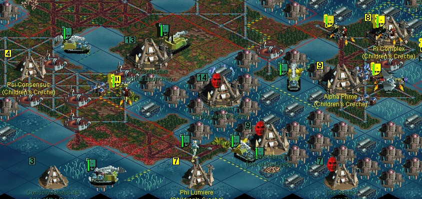 MY 2326.  The Cyborgs foolishly complete a raising of Tau Collective from the water.  That was my next conventional target and it was much harder to get to in the water.  Maybe there are benefits to ignoring enemy Formers for awhile?  I make my assault.  They are well defended and although I weaken them, they hold and my attackers die.