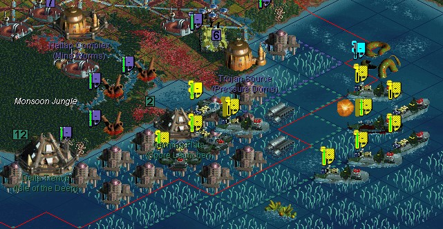 I never bothered to train my units and I got wounded by a Sealurk between turns.  The defender is Elite and they have  Naval Yard, so I actually have to fight for this.  I barely live through it.  95% wounded and the base drops to size 5.  I lose a ship but then drop the base to 2.