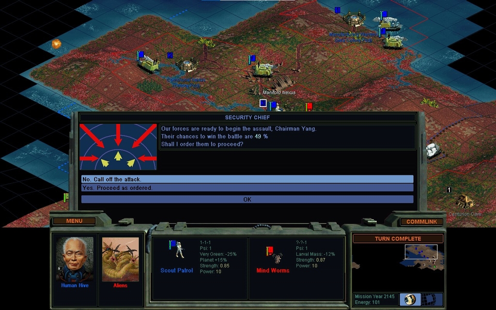 With that in mind, I have tough time linking your aspire for turn advantage to specific things preferences like psi combat odds, money from natives, etc. The latter is purely fun related.