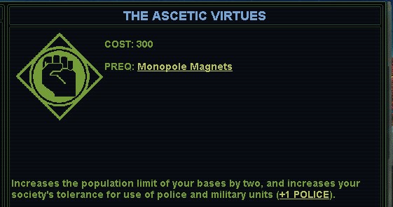 MY 2203.  I was just getting ready to rush the Citizens' Defense Force with a big pile of cash, but I'd rather have the Ascetic Virtues!  It would give me +3 POLICE and I'd be quasi-Hive-like.