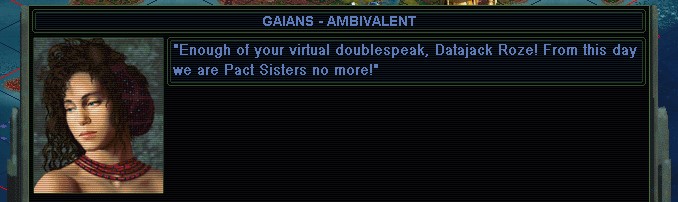 MY 2185.  I run into the Gaians at sea near the Manifold Nexus.  They want to borrow money.  I decline, because I expect everyone to hate me before long.  They want a Pact, and I agree on that for now.  How soon until they become squeamish about my atrocities?