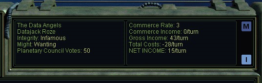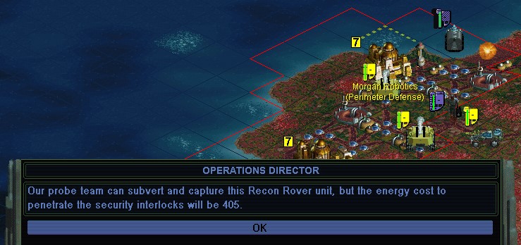 I currently have a bunch of probe teams and not much else.  I was trying to go down Morganic roads to sabotage stuff, but there's a Former in the way.  What's with its godawful expense level?  Yes I know this is my mod, but this is pretty ridiculous.  Ok, yes, a stone's throw from the Morganic capitol.  Still that price is insane.  Morganic government is a Capitalist Police State so they do have +1 PROBE.  Well I suppose I meant to test the playability of all of this.  I can't go back to the bad old days of the AI taking over invader hordes for next to nothing though.