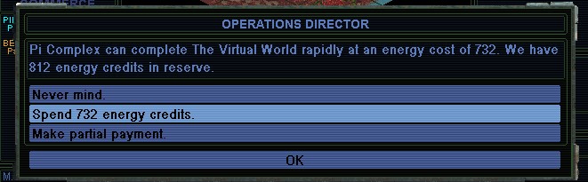 MY 2213.  This could be a good strategy for trashing the Data Angels.  For one thing, they're immune to probe teams.  But for now, I'm building Energy Banks.