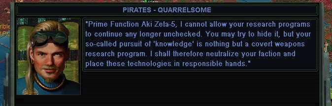 MY 2281.  Good reason to whack on the Pirate bases.  I might just send out the Cruiser Probe Team to get this underway though.  I should make some Isles, as they'll probably do a good job clearing out Svensgaard's ships and bases.  Probably better than Impact Marines will do.