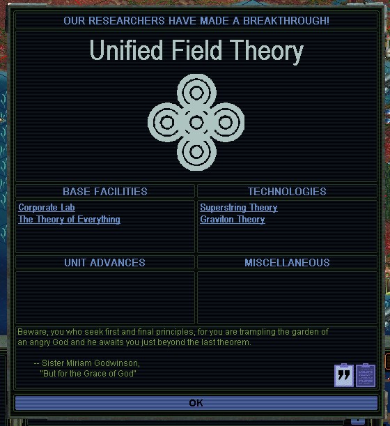 MY 2310.  The Cultists were about to have a major breakthrough, but I finish the Supercollider first.  I finally learn D6 Digital Sentience.  I go Cybernetic, as there's no penalty for me.  I wonder if that's just in time for Roze to hate me to the bitter end?