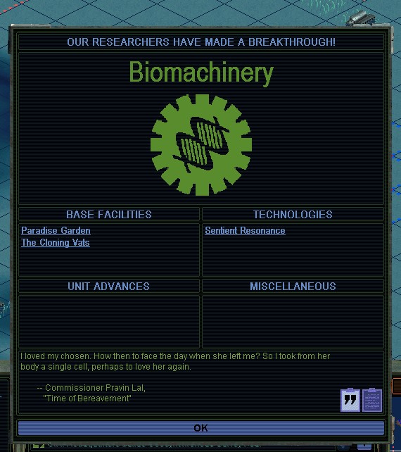 Lastly, several times you would go look and see what techs another faction had. I do not know how to do that in regular SMAX, even if I have infiltrated them or am Governor. Actually, I would like to be able to list all the techs *I* have learned, but don't know if there is a way to do that either.