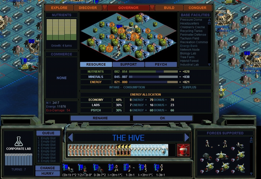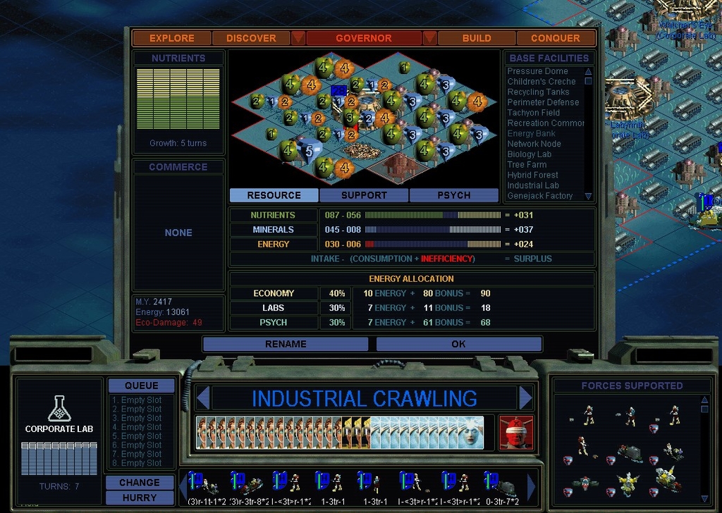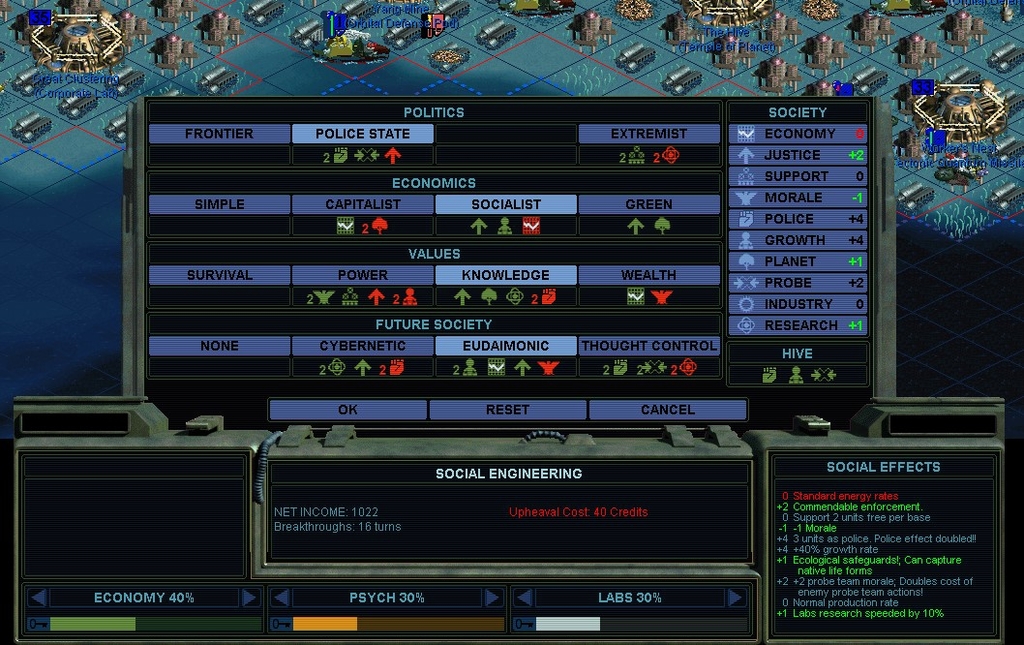 I switch to Knowledge, as once again it doesn't affect my income much.  Even my Gaian cities are starting to build Industrial Labs now.  With all the corruption in those distant cities, they must have some really frivolous research going on over there!  Like how to make better chocolate bars out of human flesh.