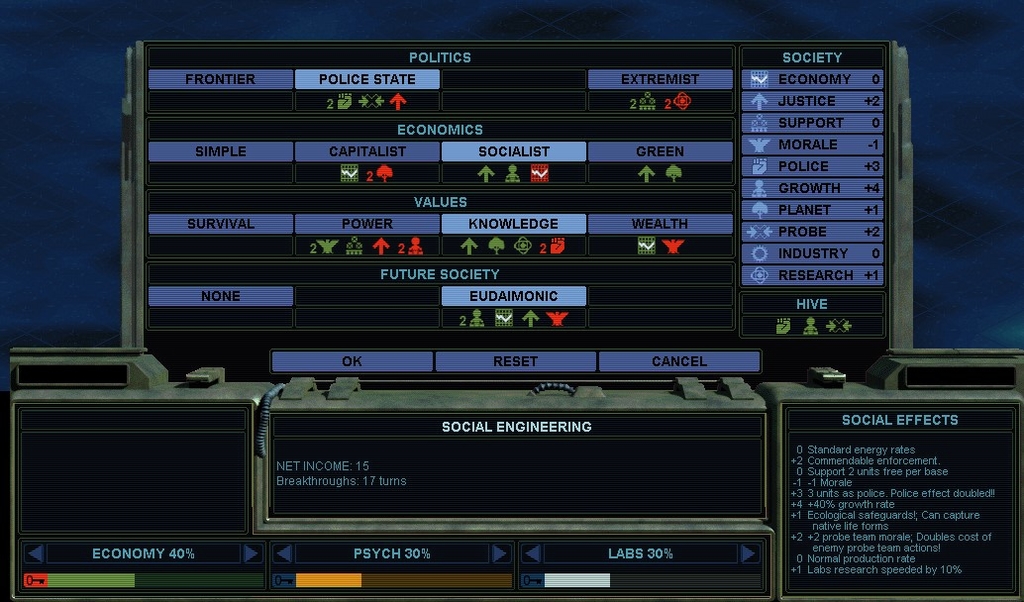 MY 2300.  If I switch to Wealth, I get to double my income and make absurd amounts of money!  I'm not sure what good it does me, as I usually just buy Secret Projects.  I said I wouldn't do that.  I wasn't planning on mind controlling bases, I was going to destroy everything that doesn't have a Secret Project in it.  Could I corner the energy market?
