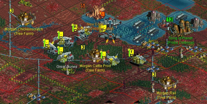 Not a lot of military action this year.  I fried a couple of defending artillery pieces with my spore launchers.  I don't think Miriam is capable of air combat in the region.  I've focused this year on using my Formers with perfect efficiency, given they are a mixed fleet of normal and Super Former designs.  Next year I'll raise at least one of those cities and take it with old troops.