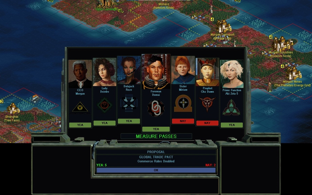 MY 2199.  Domai's finally gotten the Monsoon Jungle together.  I didn't even think about bribing anyone to hold onto the Governorship, because I just got the plans for the Virtual World through the Planetary Datalinks.  Just in time too, as Cha Dawn is threatening to complete it next year.  I fire up 3 copies of it (it's virtual!) and rush one of them with cash.  The other 2 plod onwards to be "something later".