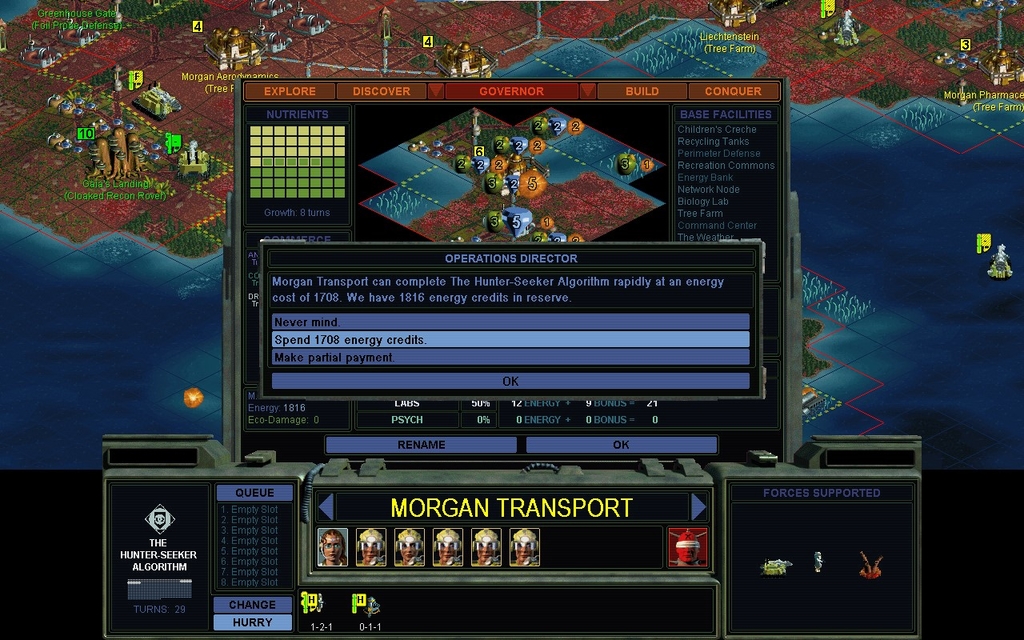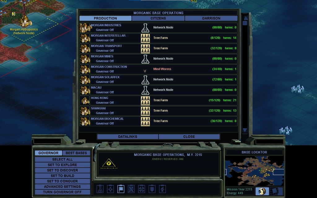 MY 2206.  I obtain the plans for the Human Genome Project from the Planetary Datalinks.  It was a good decision, building that earlier.  I rush it with cash.  I now only have 1 Secret Project city left.  Hopefully I'll manage the Planetary Energy Grid with that.