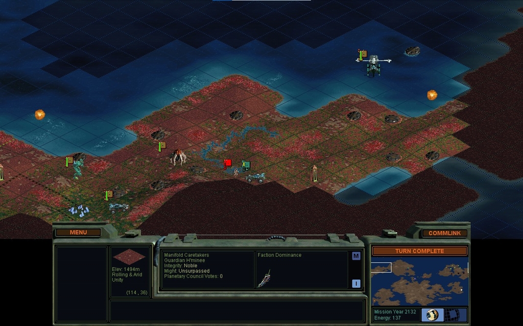 It has taken 2 aborted After Action Reports, to identify the commonality of approach.  I have been after "odd" ways of fighting enemies.  Dusty corners of the game that are not simply the straightforward use of force.  I've surrounded like an amoeba.  I've imagined smothering with units to achieve starvation, although I didn't get around to doing it.  I've wondered at the benefit of a Fungal Missile, spreading unwanted stalks.  A technique I've never used, is releasing mindworms into the wild, to avoid culpability for their damage. Dirty tricks during sunspots.  And can terraforming be used as a weapon?  If you have frenemies, how many different ways can you control them?  Do they even know or understand that they are being controlled?