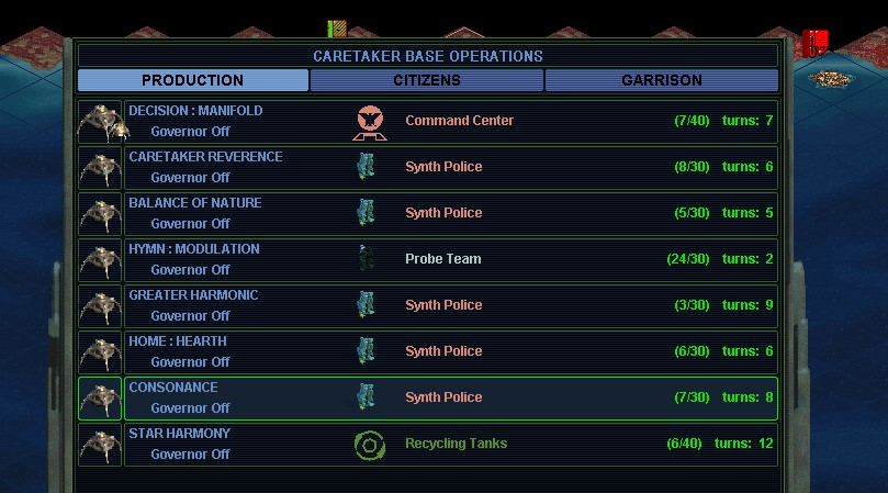 Huge map, 30%..50% land mass, average settings, Transcend difficulty.  Random factions, I draw the Caretakers.  I am on a 3 continent world closely resembling a Pangaea.  On such land masses, experience shows that I can expect to have neighbors breathing down my neck almost immediately.  It is best that I get settled right away and start producing units.