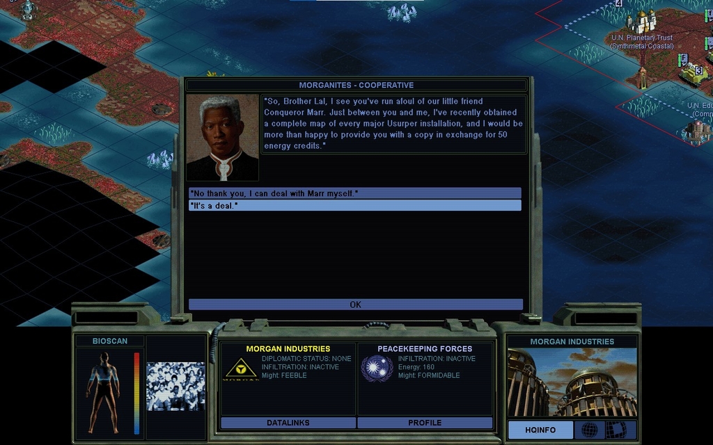 MY 21  .  Cha Dawn wants to trade with his foe?  Well, he does have a unique tech, that I wasn't willing to pay 200 credits for earlier.