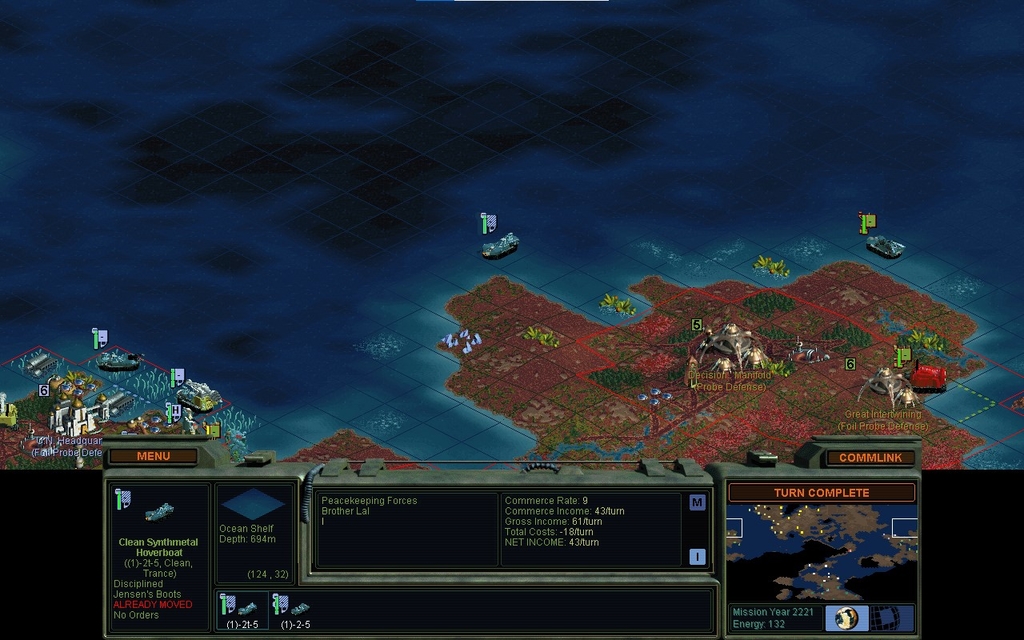 With several redundant copies of his Grid underway, he may have enough piled up, to have masked his true intent.  I could look into his cities to find out.  But it is of no use, as I can either build this now, or I cannot.  My accountants say, not.  We are perhaps 68 credits short of a rush job.