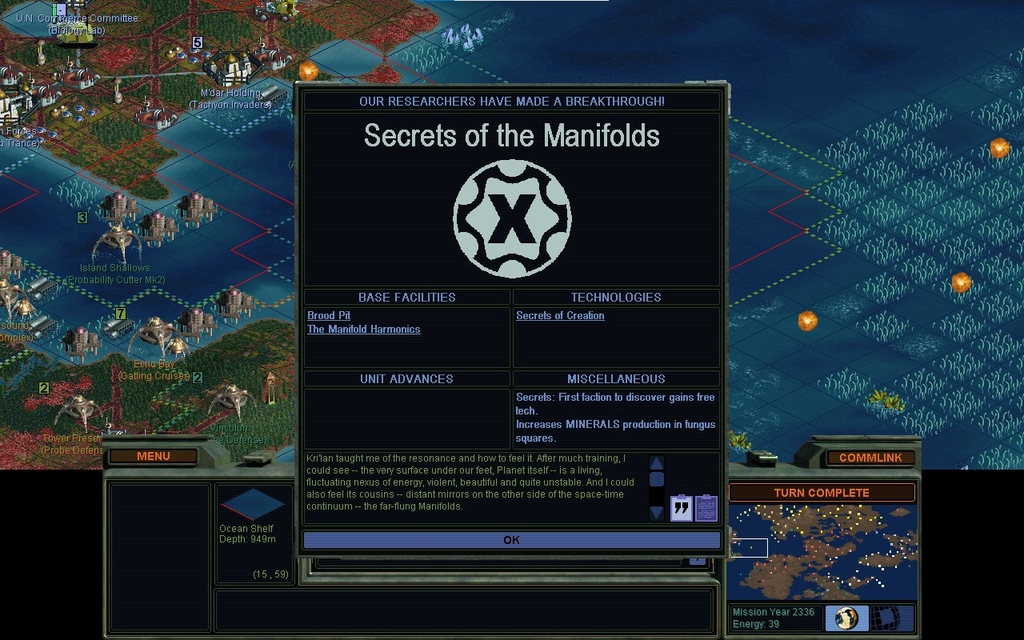 MY 2340.  Wow this is really getting up there.  Aside from the Dream Twister making pretty much invincible offensive mindworms, Soporific Gas Pods is a tech I deliberately delayed until late game to "soft retire" it.  That is, make it so late in the game, that gaining it would hardly matter.  I can just brutalize things if I actually want to.  Yet I'm still just making a bunch of supply crawlers to complete even my existing Secret Projects.