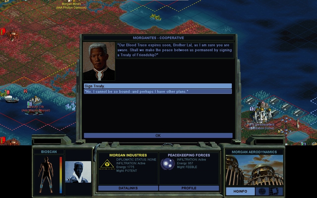 MY 2327.  The dividends of shameless worker and environmental exploitation are paying off.  I won't be having to fight Morgan.  In fact, I got him to sign a Pact.