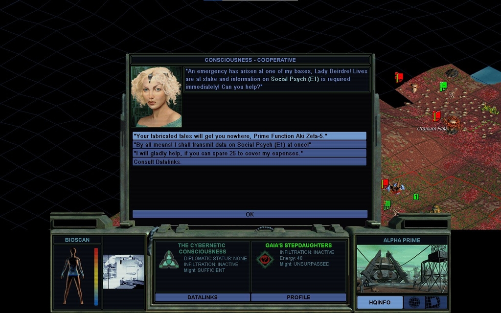 Morgan, who sought to dominate Planet, burned away its fungus.  Domai, who sought collective democratic action, amassed enough labor to force their frontier.  Aki, the half-cyborg, simply bean counted her way to a viable populace, sacrificing many of its members along the way.